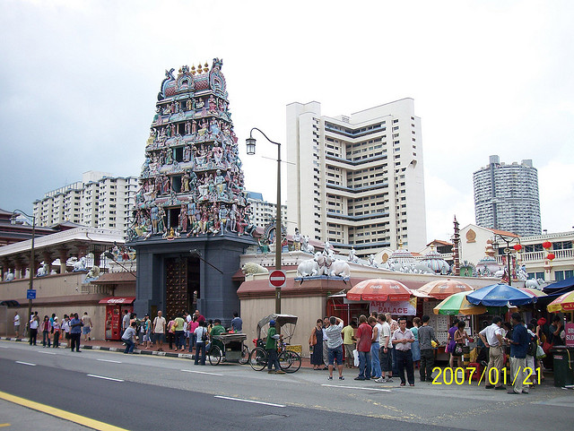 スリ・スリニバサ・ペルマル寺院は、1885年に建てられた由緒あるヒンドゥー寺院です。もともとは、イギリス・東インド会社のものだった土地でした。シンガポールの重要記念建築物にも指定されています。リトルインディアの中心から外れたセラングーン・ロード沿いにあります。ヒンドゥー教の奇祭として年に一度行われるタイプーサムの出発点としても、よく知られています。